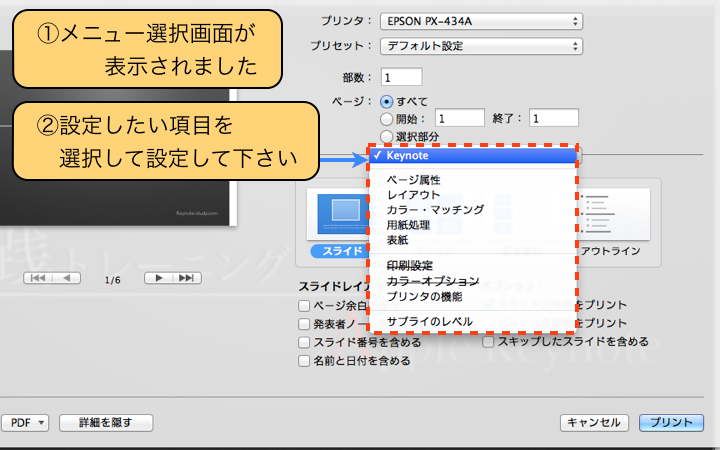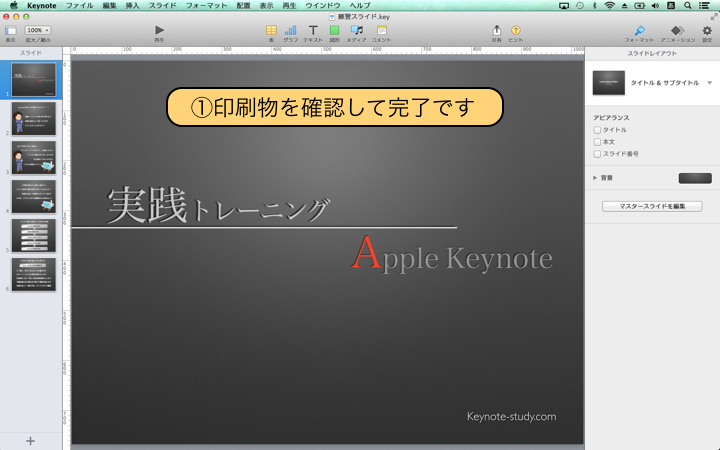 - 今回は、Keynote(キーノート)スライドの印刷について解説します。